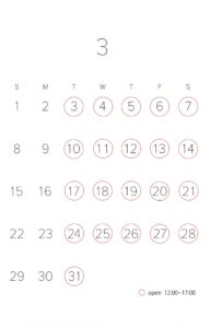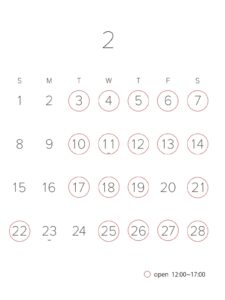 2026年2月の営業日カレンダー February 2026 shop opening hours calendar